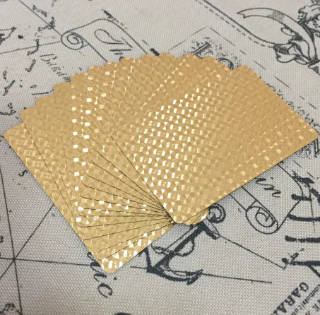 Let op: door handmatige meting kan de afmeting 1-4 mm afwijken. Kleuren kunnen licht afwijken door scherminstellingen. Bekijk de afbeeldingen voor de prachtige details van deze gouden kaarten – een stijlvolle toevoeging aan elke game night!